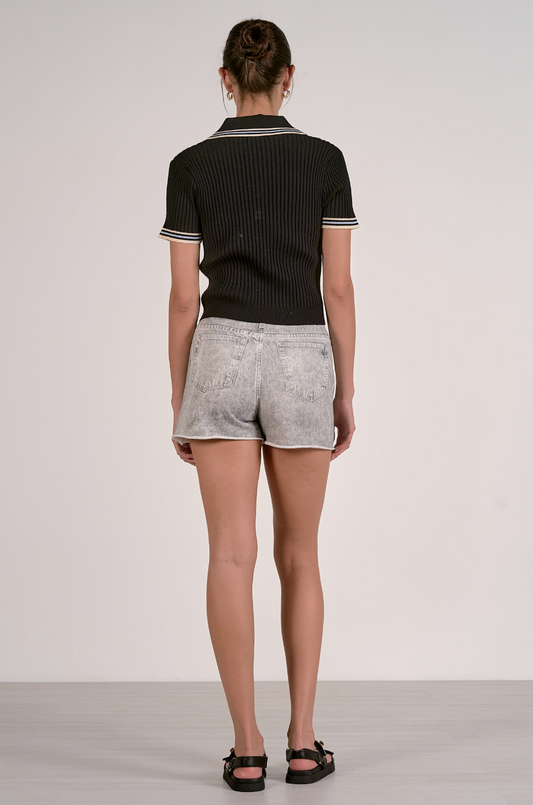 Grey Ribbed Knit T-Shirt