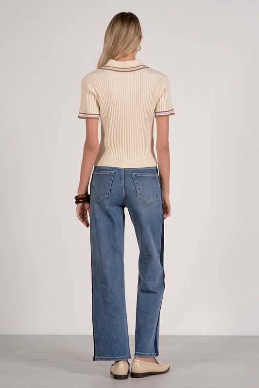 Cream Ribbed Knit Sweater