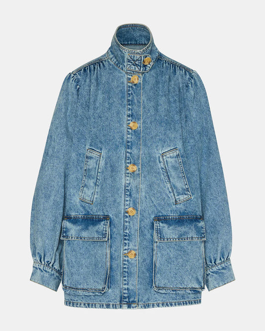 Abigale Crew Neck Long Sleeve Peplum Denim Blazer