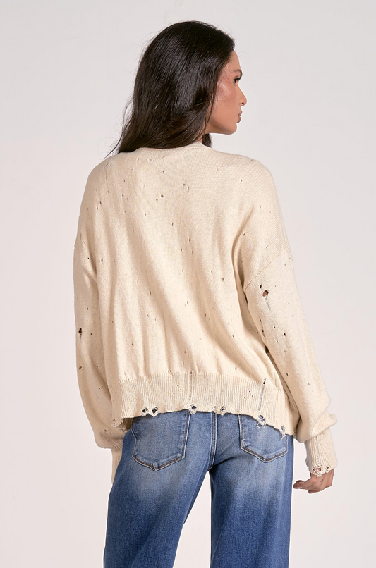 Distressed Off White Cardigan