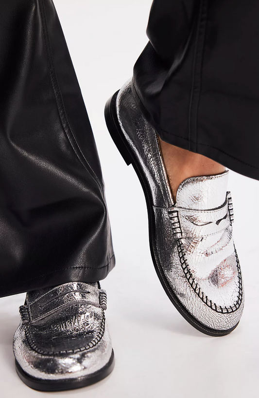 Blanket Stitch Silver Loafers
