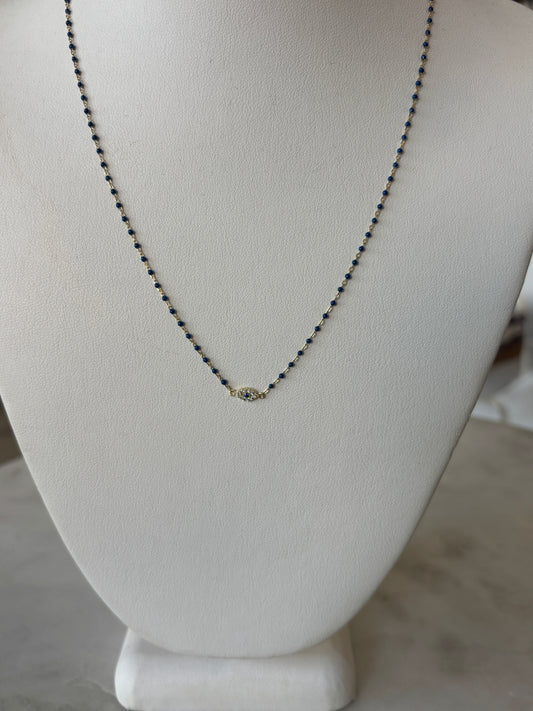 Bezel CZ & Beaded Necklace: Navy, White, Turquoise, or Black