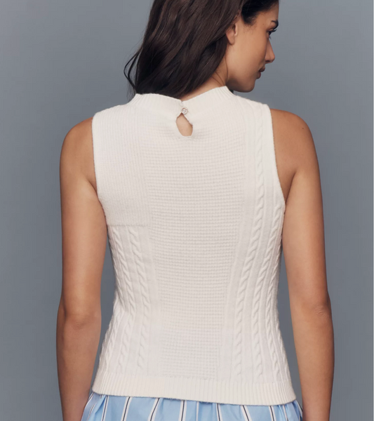 Serena Mixed Stitch Denim Collar Shell