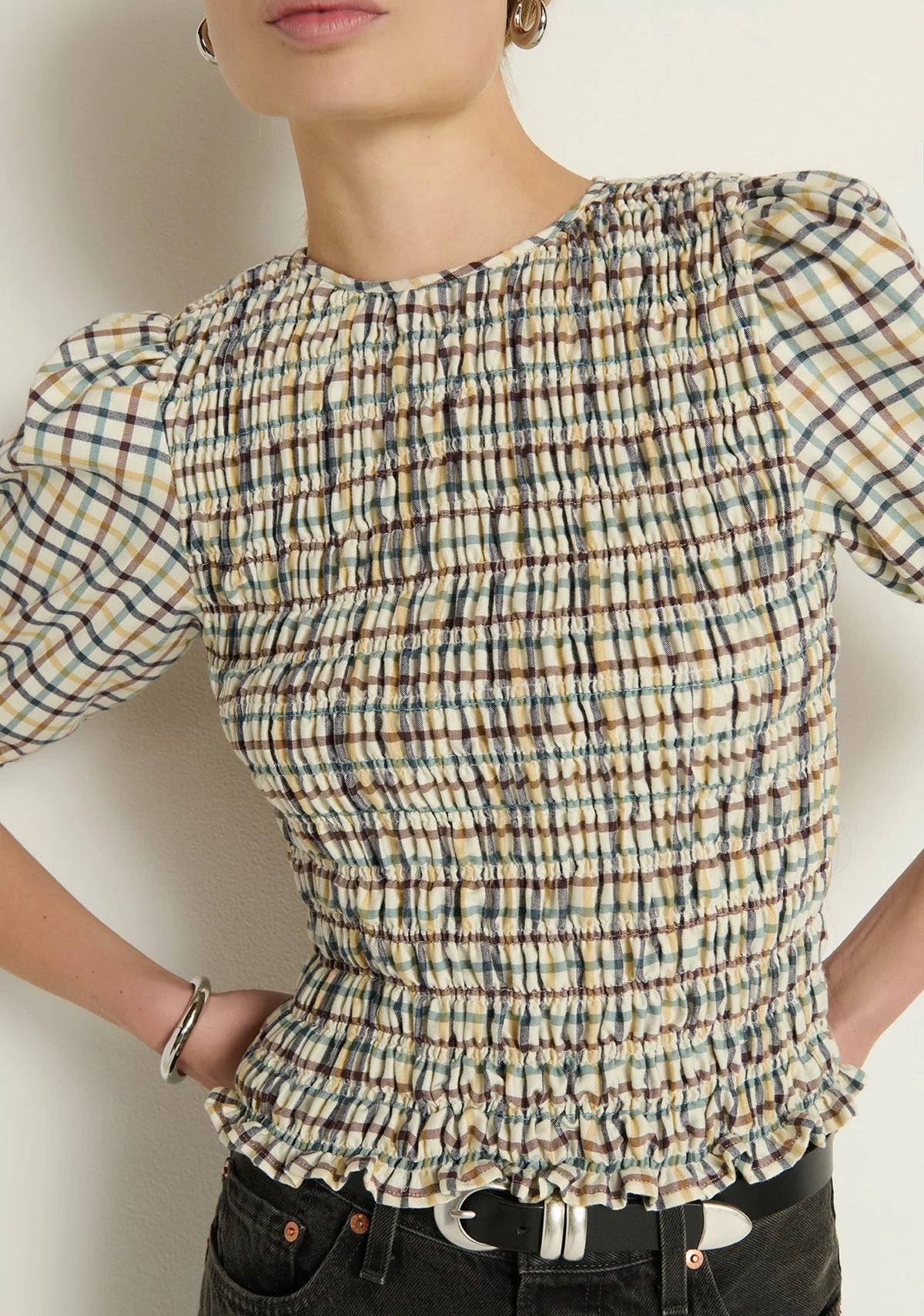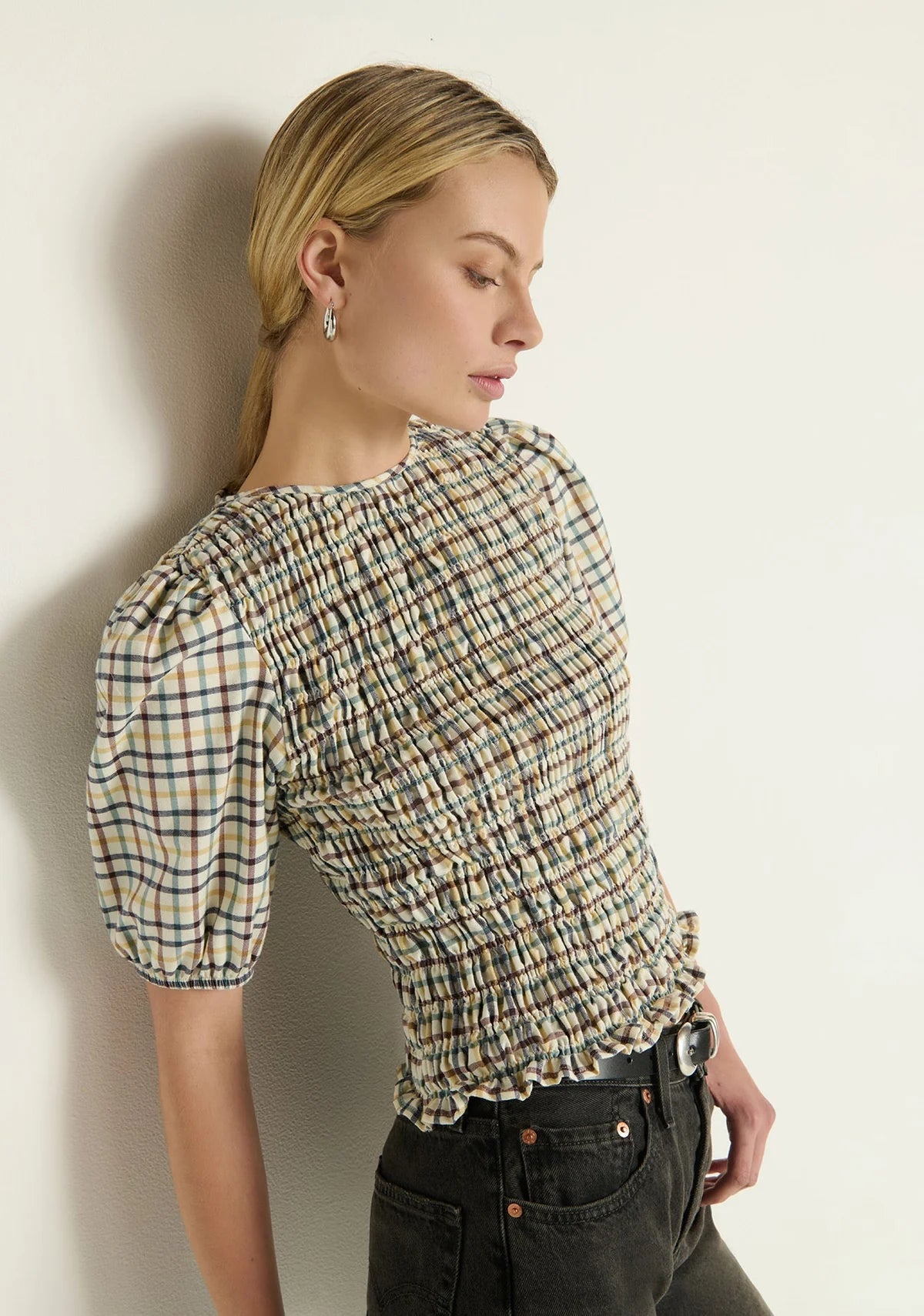 The Brinley Smocked Top brings picnic vibes with its playful multi-color plaid design. Made from 100% Pima Cotton, it hugs your body with a smocked fit and ends in a flirty, ruffled hem that grazes the hips—perfect for carefree, stylish days out.