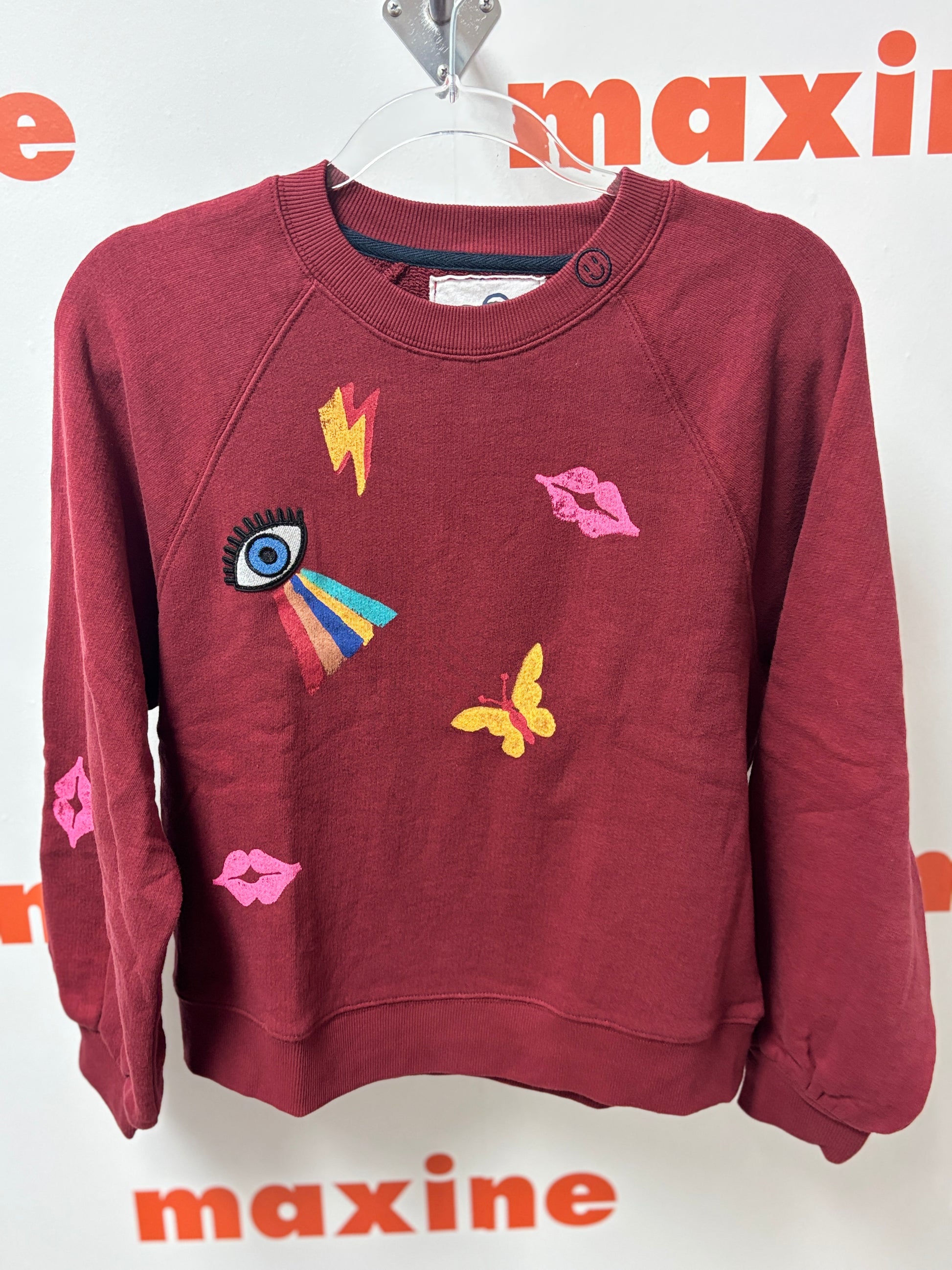 Stay stylish and comfortable in this Burgundy Graffiti Sweatshirt, featuring bold lightning bolt, lips, heart, and eye prints for a vibrant, artistic look. Made for everyday wear, it adds a playful edge to your casual outfits while keeping you cozy throughout the day.
