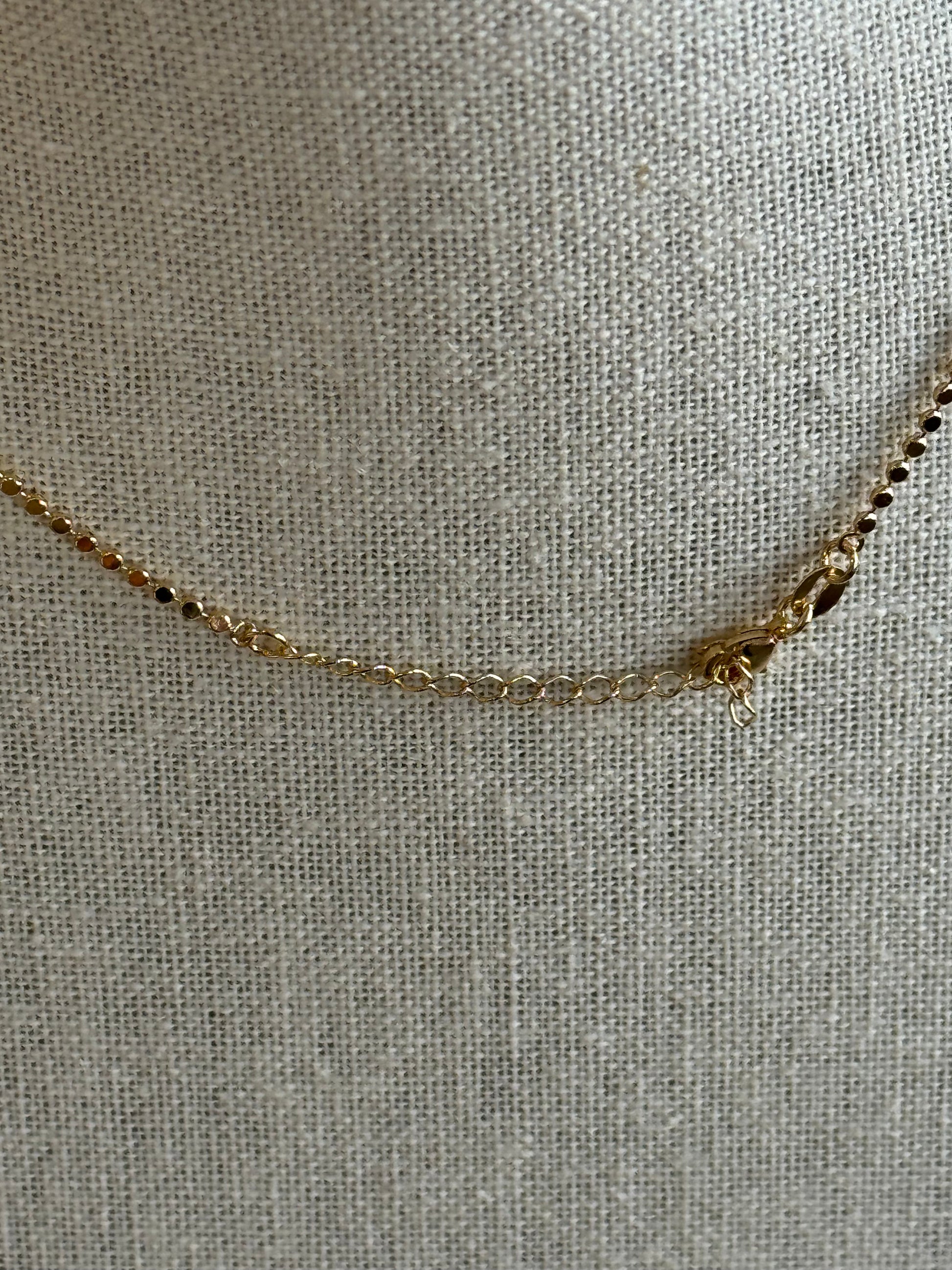 Minimalist flat dot chain in 14K plated brass. Wear it solo or layer it with your favorites. Adjustable 16" length with 2" extender for the perfect fit.