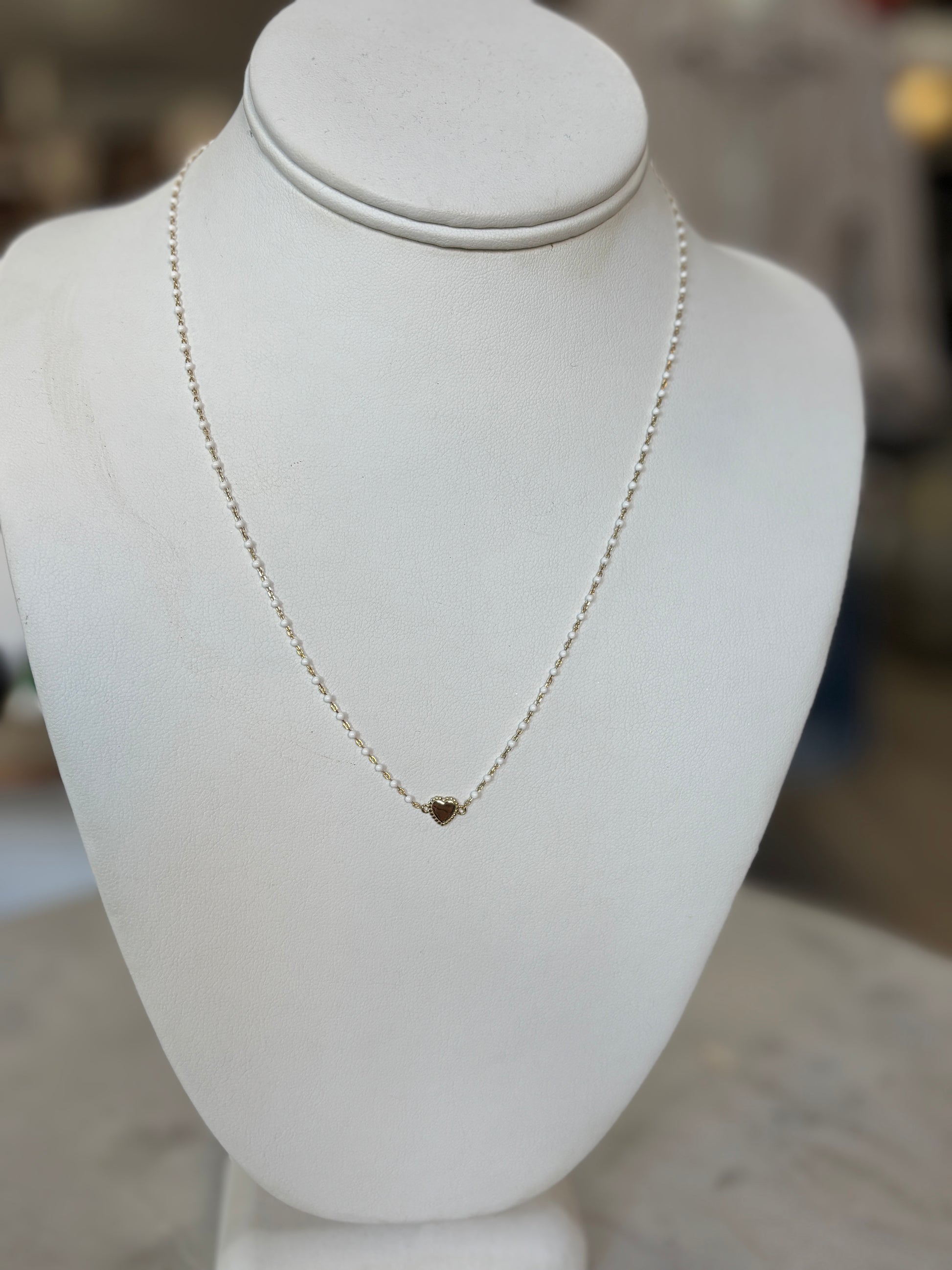 This versatile beaded necklace features either white or black beads, centered with a delicate heart pendant for a subtle, heartfelt touch to any outfit. Its casual design makes it perfect for everyday wear, adding a charming accent.
