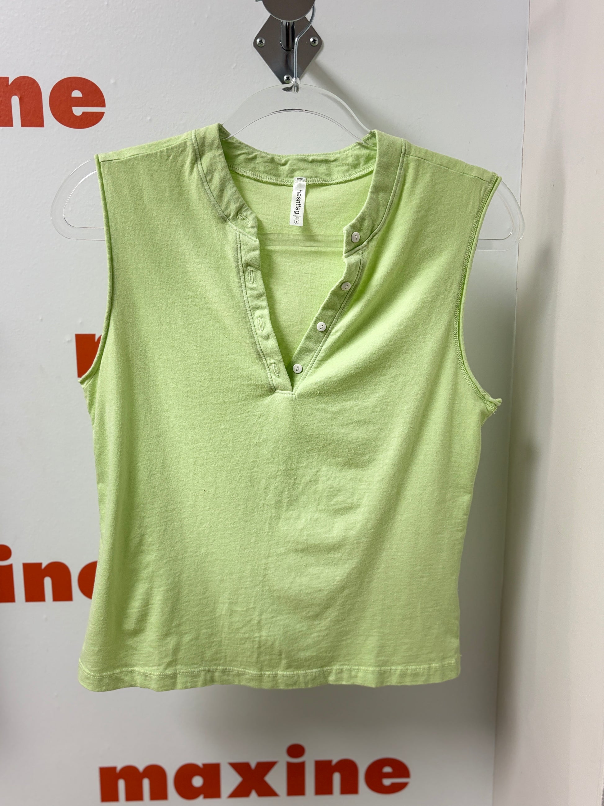 This sleeveless henley top is crafted from soft cotton for all-day comfort. Featuring classic button details, it offers a versatile and breathable option perfect for layering or wearing on its own.