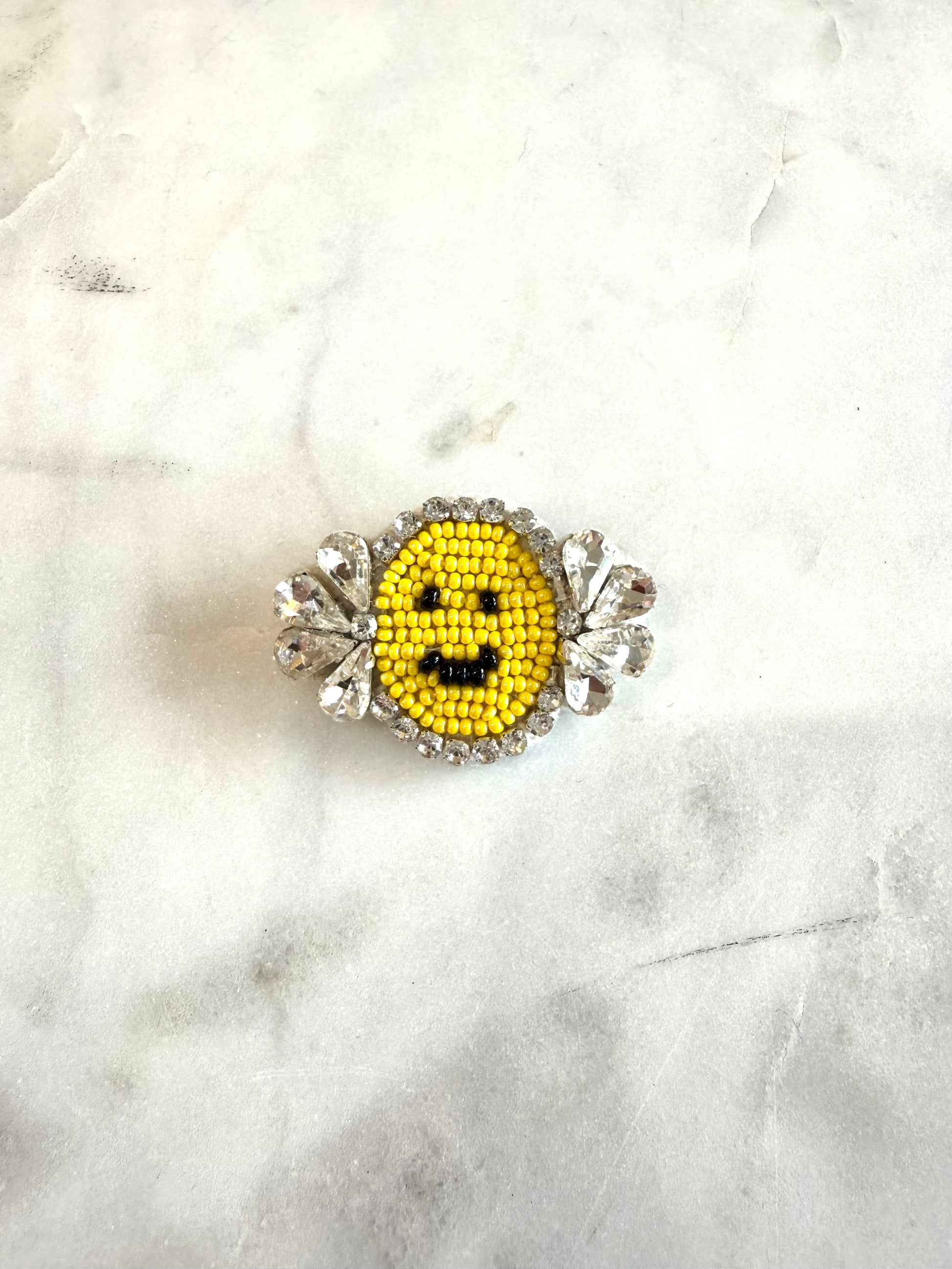 The Smiley Face Pin showcases a refined blend of wool, cotton, glass stones, and delicate glass beads in a subtle 5 cm design. This timeless accessory adds intricate detail and sophistication to jackets, bags, or hats, effortlessly elevating your look with understated elegance.