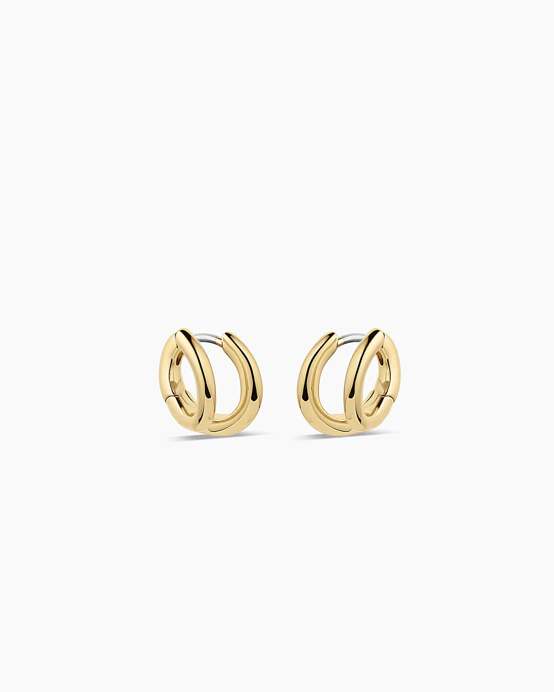Fake a full stack with these 18k gold plated huggie hoop earrings - designed to make it look like you have multiple piercings, even if you only have one. Stack these alongside the Shimmer Double Huggies for a statement stack, or keep it simple and wear these on their own.