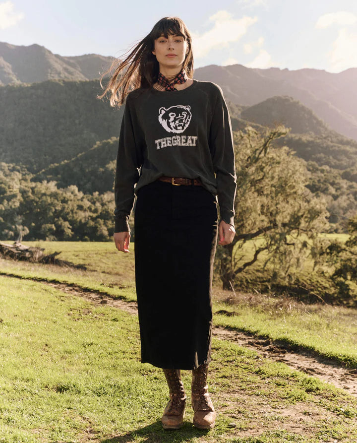 This classic cut is based on our favorite vintage sweatshirt body and features a lived-in vintage wash and our signature slit on the left cuff. Made from a washed terry with a vintage feel, this oversized sweatshirt also features the softest hand. Handcrafted locally in Los Angeles, our process ensures beauty and uniqueness—no two pieces are alike. Our Bear Graphic is the 1st graphic we launched as a brand and serves as a nod to iconic vintage collegiate graphics that only get better with time and wear.