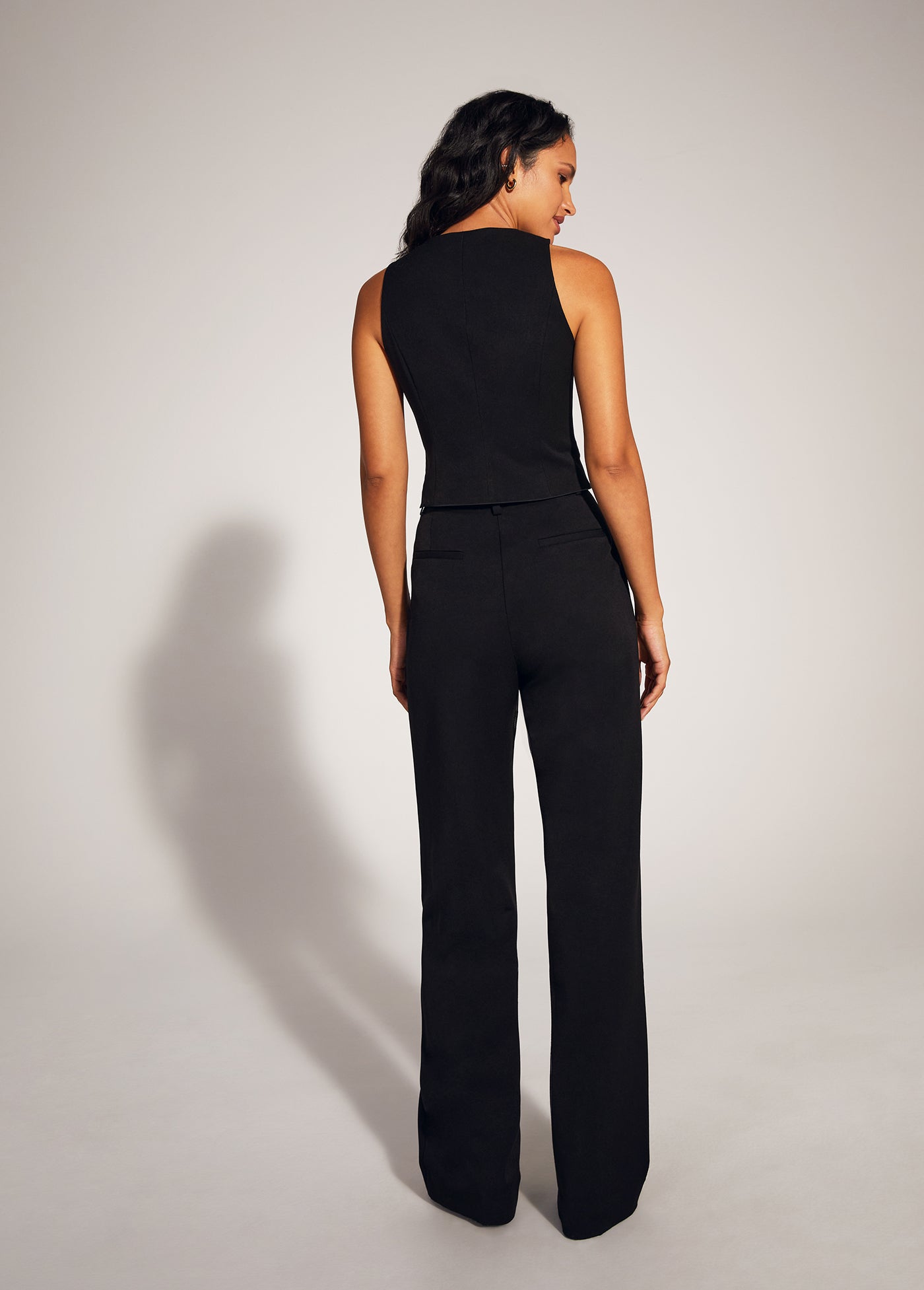 The Favorite Pant lives up to its name with a timeless wide-leg silhouette that flatters and moves with ease. Cut from premium suiting fabric with a 12.75" high waist and subtle front pleats, these black trousers deliver polished sophistication. The 34" inseam pairs perfectly with flats or heels, while functional front pockets and relaxed tailoring make them endlessly versatile—equally at home in the office or styled down for weekend wear.