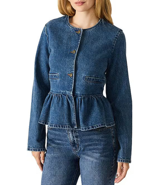 Abigale Crew Neck Long Sleeve Peplum Denim Blazer